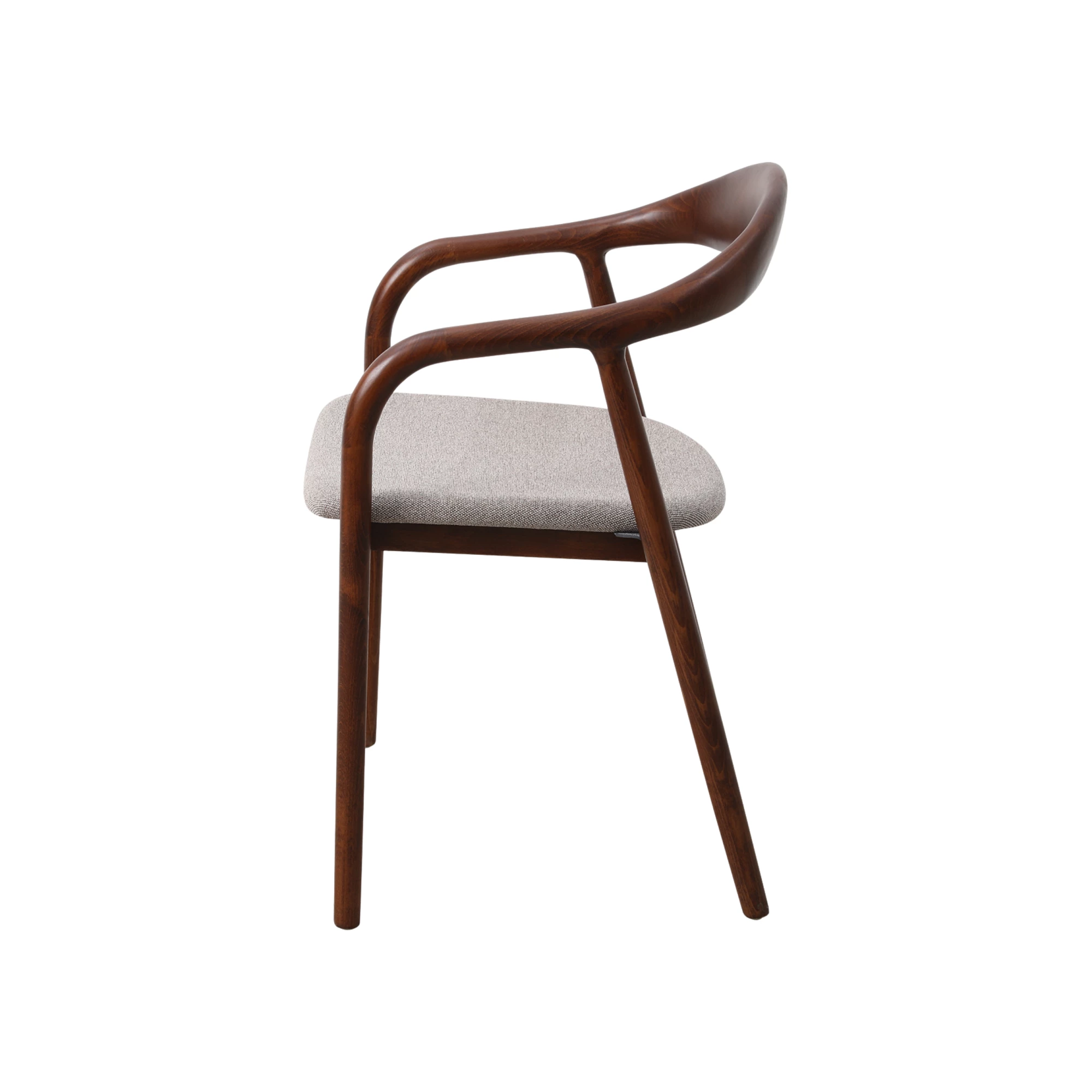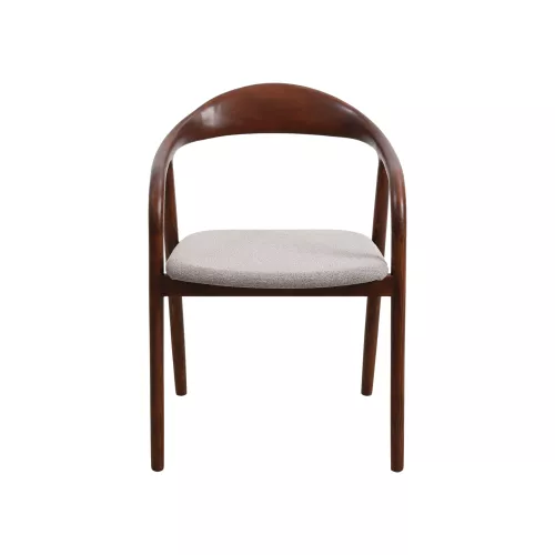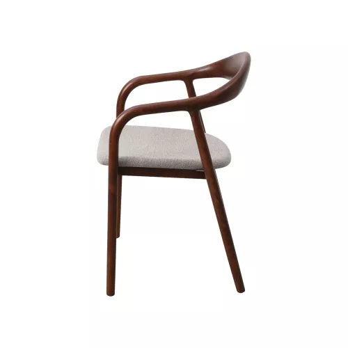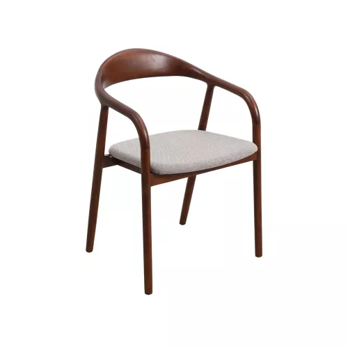 Elegante eiken stoel met zachte lijnen en een vloeiende, natuurlijke vorm. Ontworpen voor stijlvolle horecagelegenheden.