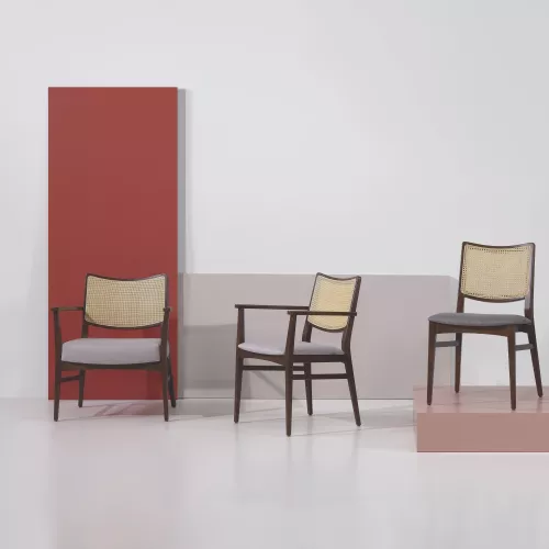 Soul Wicker Lounge is een loungefauteuil met armleuningen, ontworpen voor horecalocaties met een verfijnde uitstraling. De beukenhouten structuur is beschikbaar in verschillende beitskleuren, met een professioneel gestoffeerde zitting en een rugleuning van vlechtwerk – perfect voor stijlvolle loungezones en lobby’s.