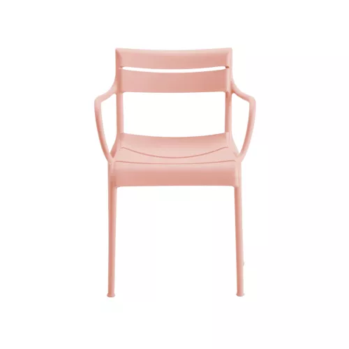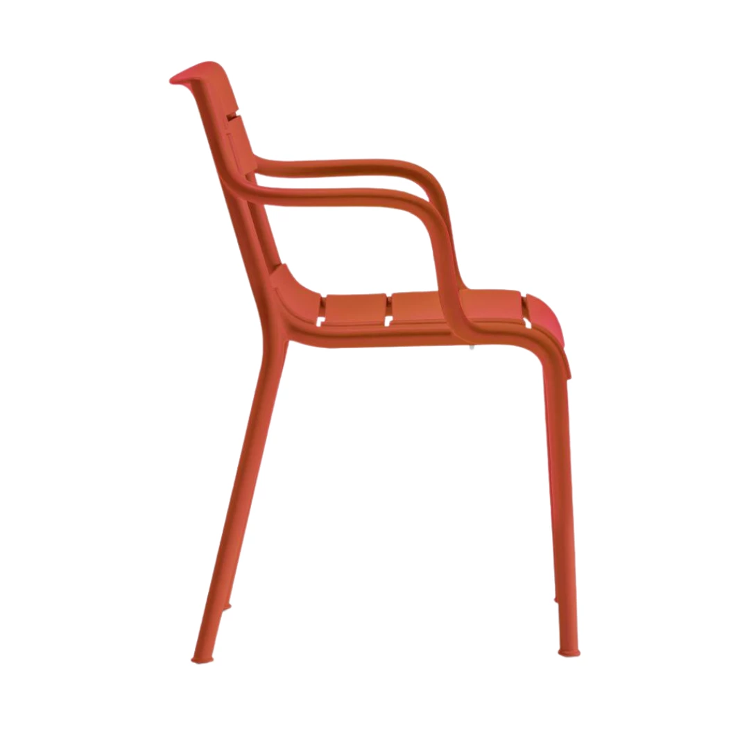Souvenir is ontstaan uit de wens om de iconische vormen van de stoelen uit Parijse tuinen uit de 18e eeuw opnieuw te interpreteren. Deze armstoel in monoblock polypropyleen is speciaal ontworpen voor buitengebruik en valt op door zijn harmonieuze vorm waarin alle elementen op natuurlijke wijze samensmelten. Duurzaam, licht en elegant – perfect voor terrassen, tuinen en horecagebruik in de buitenlucht.