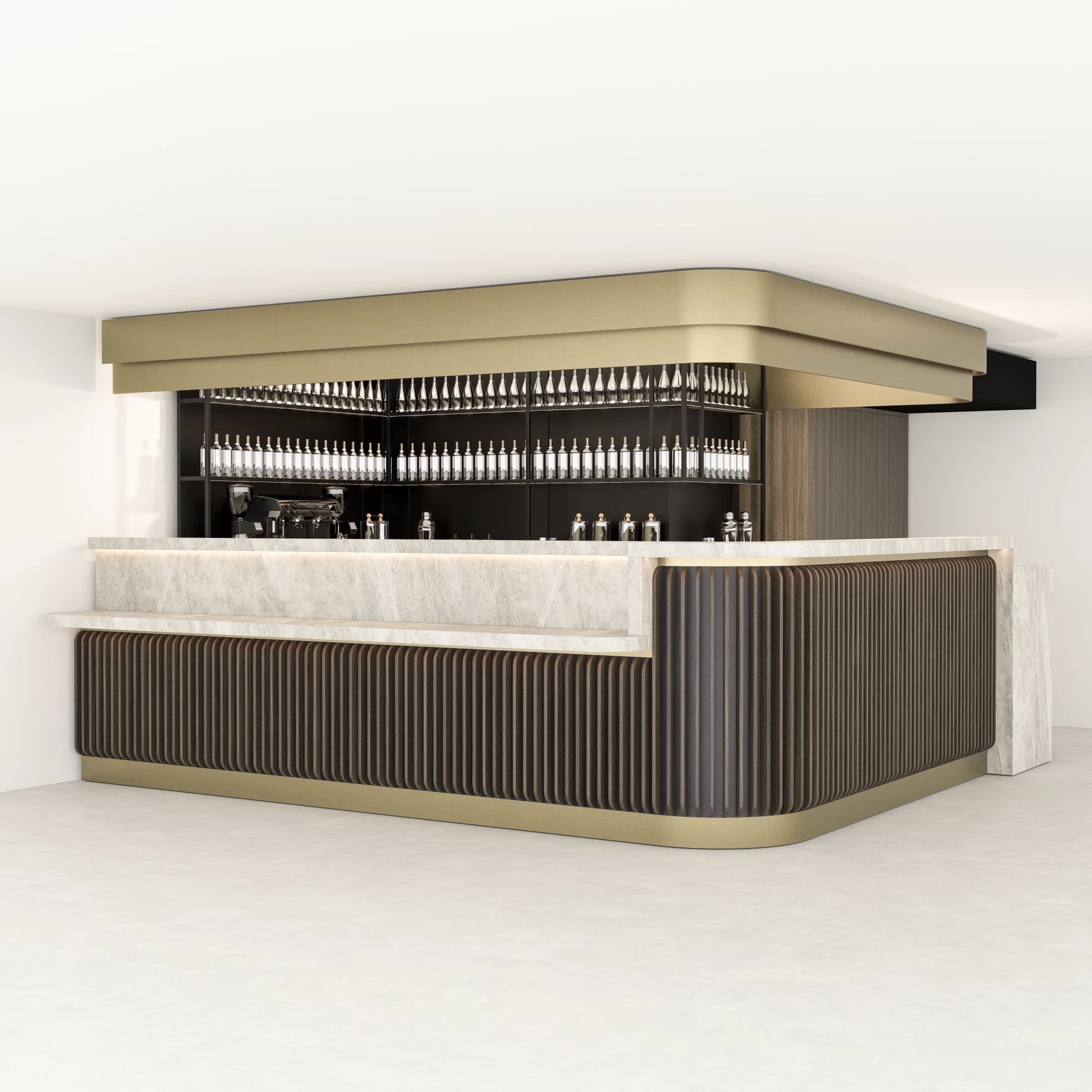 Een bar die is ontworpen om elke horecagelegenheid naar een hoger niveau te tillen: warm, verfijnd en met harmonieuze materialen als kern.