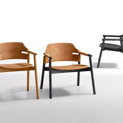 De Suite AP L CU is een stijlvolle loungefauteuil ontworpen voor horeca-omgevingen. Het frame is vervaardigd uit essenhou, beschikbaar in diverse houtkleuren. De zitting en rugleuning zijn bekleed met hoogwaardig leer. Perfect geschikt voor lounges, hotellobby’s en andere stijlvolle interieurs binnen de horecasector.
