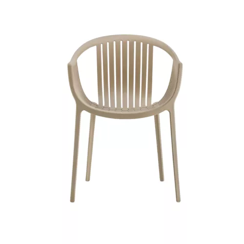 De Tatami 306 is een buitenstoel met armleuningen, gemaakt van 100% recyclebaar polypropyleen. Lichtgewicht maar zeer sterk, bestand tegen UV en regen. Ideaal voor terrassen en horeca. Verkrijgbaar in diverse kleuren en makkelijk stapelbaar – duurzaam en praktisch.