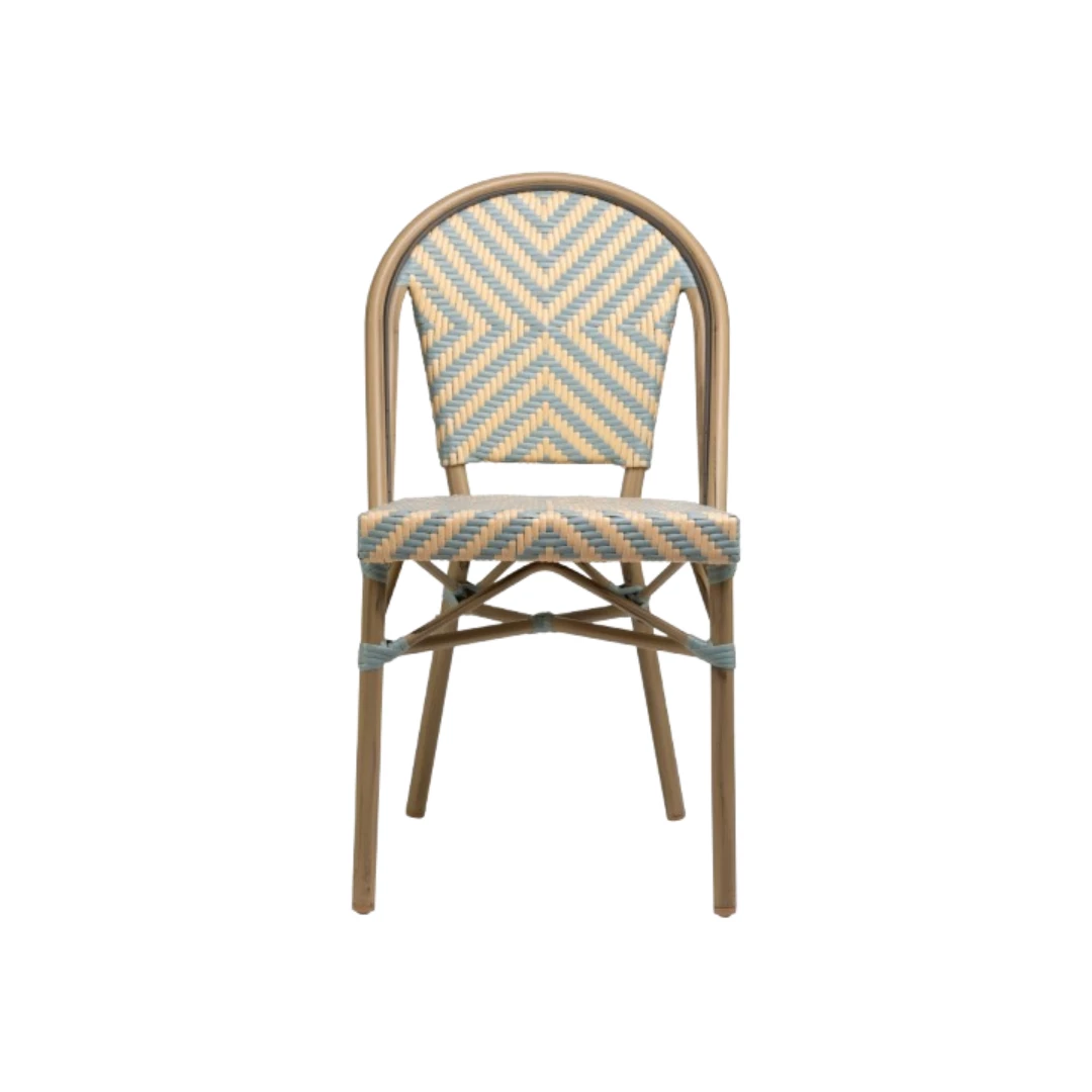 Discover the Tone terrace chair, an ideal seating solution for restaurants, cafés, and bistros. Crafted with a sturdy aluminum frame for lightweight durability, it features an attractive bamboo look that brings natural warmth and elegance to any outdoor or indoor space. Thanks to its UV-resistant construction and flat weaving, Tone is built to withstand sun and weather, ensuring long-lasting beauty. Its stackable design (up to 19 pieces) allows for efficient storage and easy handling, making it perfect for high-traffic hospitality settings. Available in a range of color combinations — Classic Bamboo/Black-White, Light Bamboo/Beige-Blue, Light Bamboo/Beige-Pink, and Light Bamboo/Black-White — Tone offers versatility and style to match any décor. Bring comfort, practicality, and a refined aesthetic to your terrace with Tone.