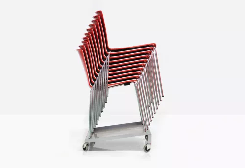 De Tweet 890 stoel combineert een strak, dubbel geïnjecteerde polypropyleen kuip met een Ø14 mm stalen buizenframe in chroom of poedercoating. Antistatisch en UV-bestendig, stapelbaar tot 10 stuks en leverbaar in uni- of bicolor-uitvoeringen.