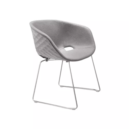 Uno 595M is een horecastoel met armleuningen en sledeframe in gepoedercoat of verchroomd staal. De stoel heeft een gestoffeerde binnenkuip en een buitenzijde van polypropyleen. Dankzij het ruime aanbod aan kleuren en materialen past hij in uiteenlopende horeca-interieurs.