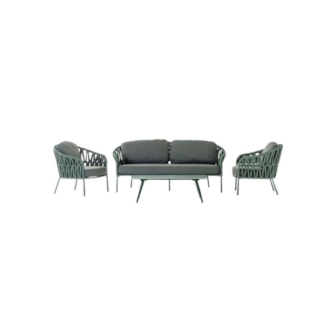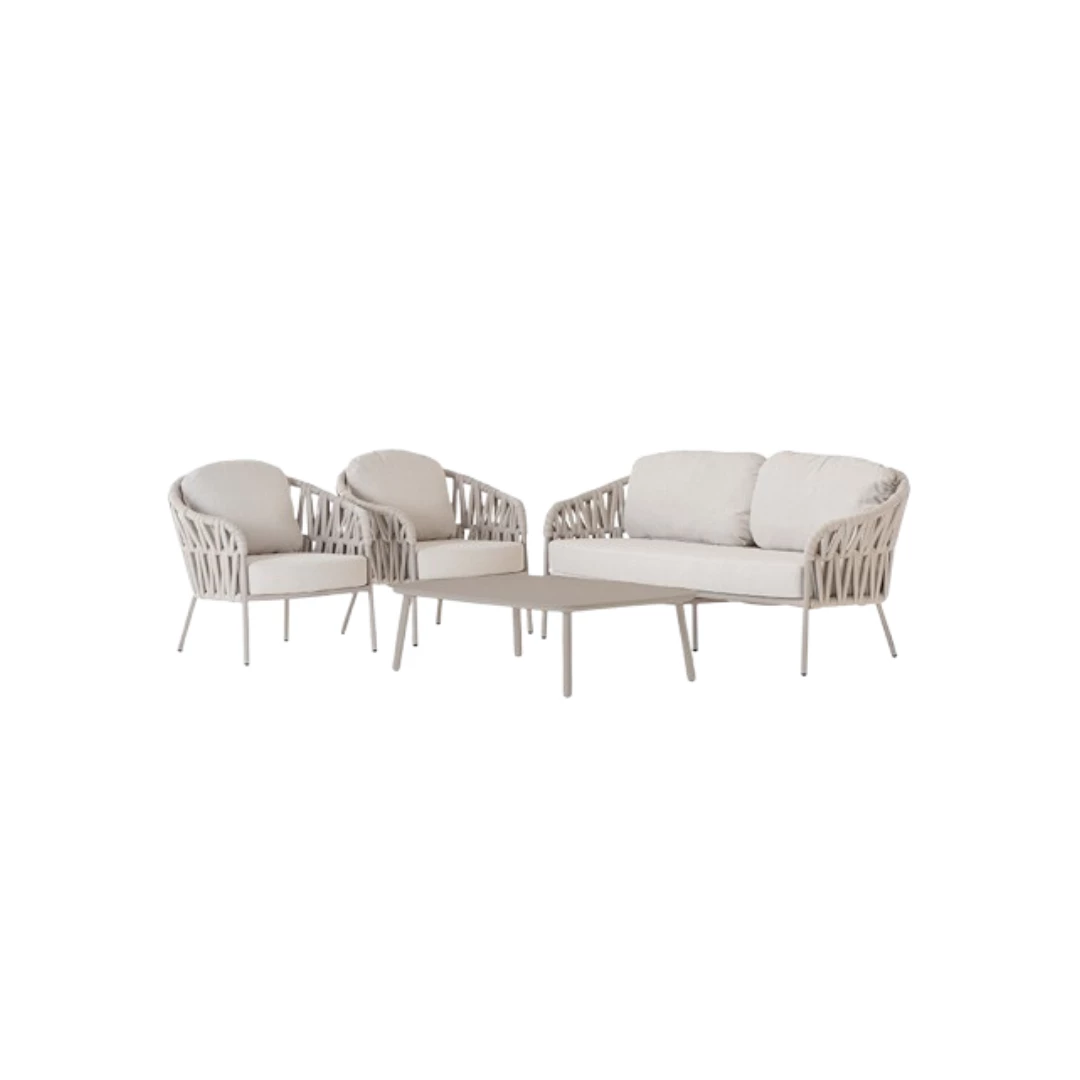 Upgrade uw buitenruimte met deze stijlvolle en duurzame loungeset, ontworpen voor zowel comfort als elegantie. Gemaakt van hoogwaardig aluminium en afgewerkt met polyester en rubberen touw, biedt de set een moderne uitstraling en garandeert tegelijkertijd een lange levensduur. De set bestaat uit een ruime bank, twee comfortabele loungestoelen en een strakke tafel met een aluminium blad, perfect om te ontspannen of gasten te ontvangen. De kussens zijn gemaakt van hoogwaardige Olefin-stof met waterafstotende eigenschappen, ideaal voor gebruik buitenshuis in diverse weersomstandigheden. Als extraatje bevat de set ook een Victory zandstoel en een Atol fauteuil, voor extra zitplaatsen en veelzijdigheid. Dit is een complete set die voor één vaste prijs wordt aangeboden en niet los verkrijgbaar is, waardoor het de perfecte alles-in-één oplossing is voor uw buitenruimte.
