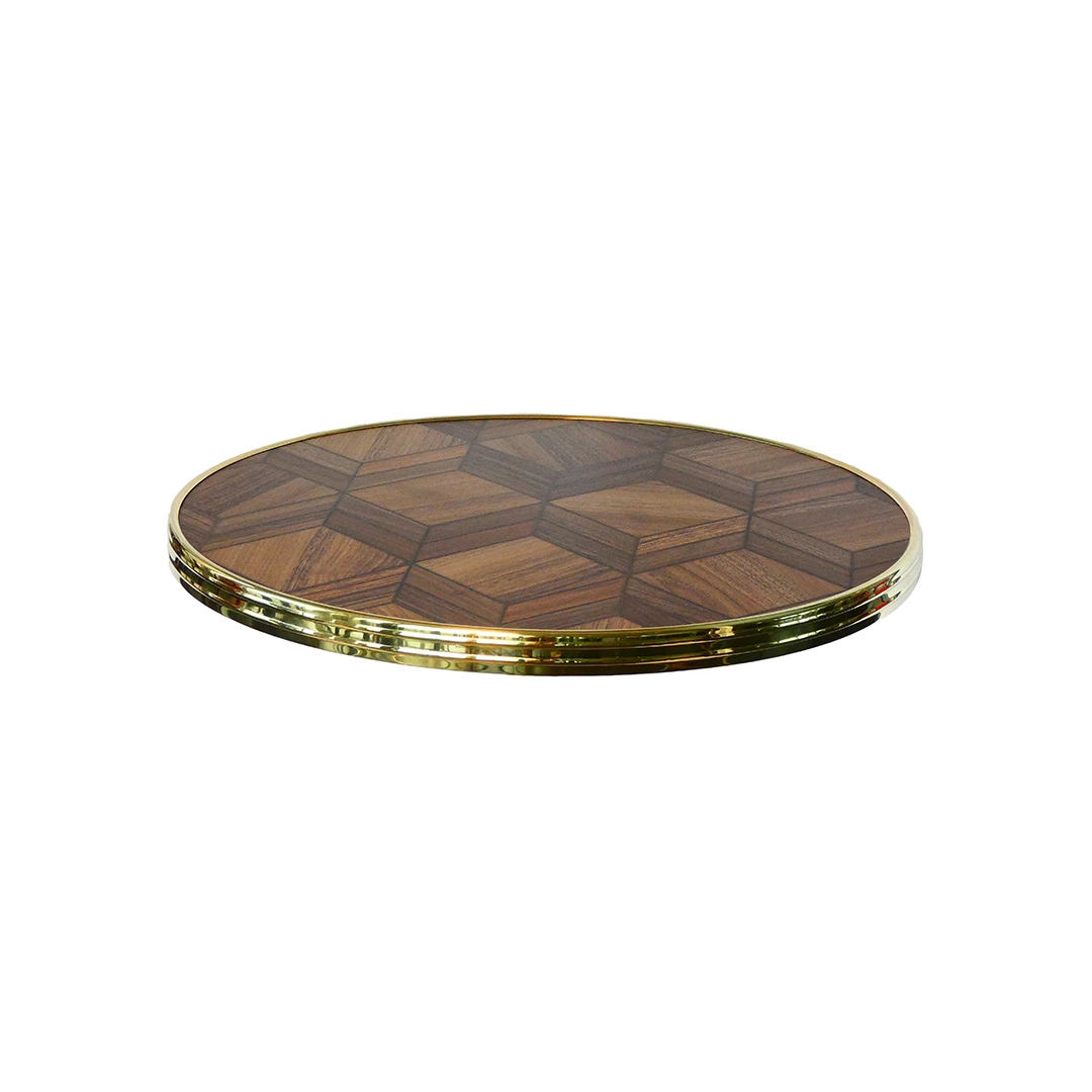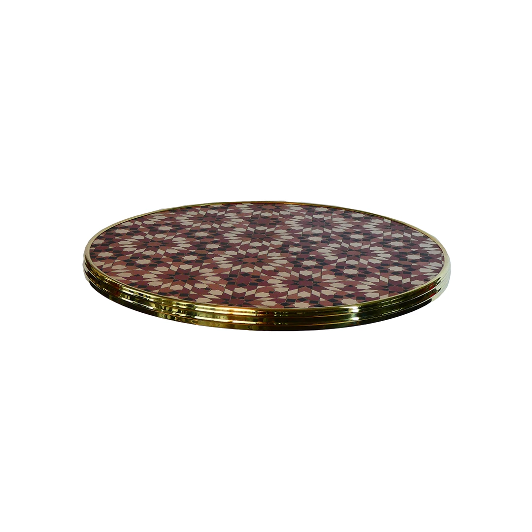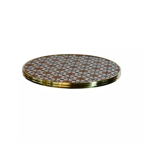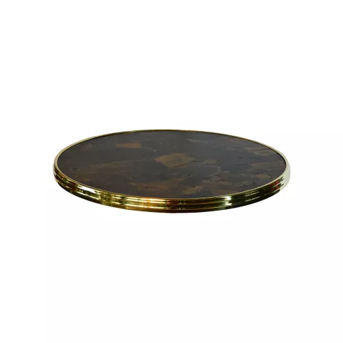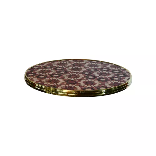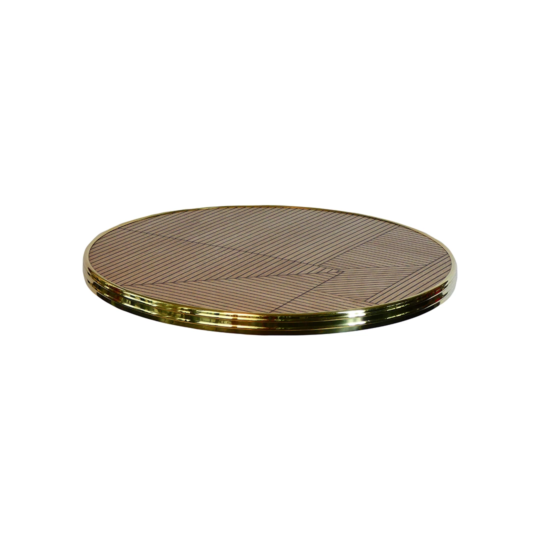 Het Werzalit Bistro tafelblad met ring is geschikt voor intensief horeca-gebruik, binnen of buiten. De messing ring biedt een stijlvolle afwerking. UV- en hittebestendig, stootvast en onderhoudsvriendelijk. Verkrijgbaar in diverse maten en decors.