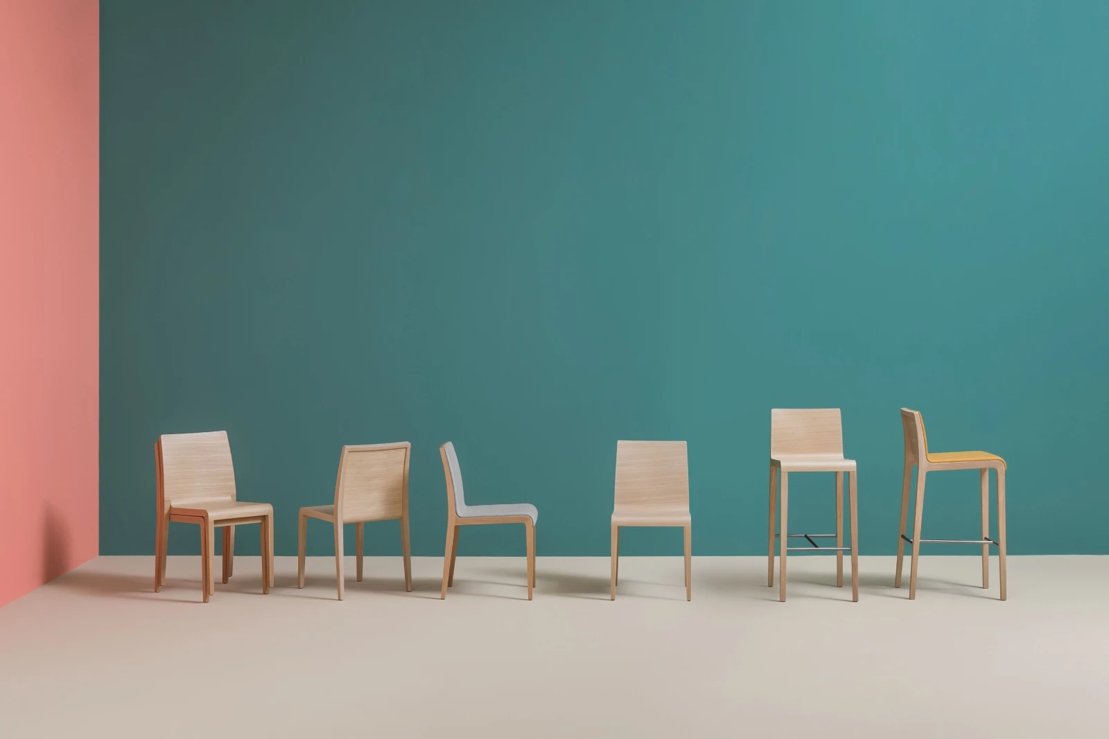 Young 421 combineert duurzaamheid met elegantie. De gebogen multiplex kuip met eiken fineer rust op een massief eiken frame. De stoel is stapelbaar tot 6 stuks en daarmee ideaal voor flexibele, stijlvolle interieurs.