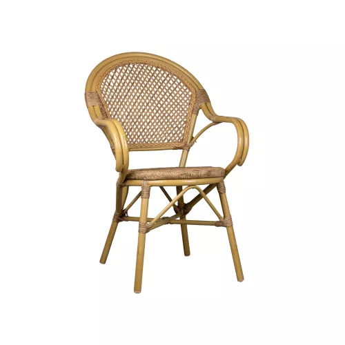 Het gepoedercoate aluminium frame is krasbestendig en geschikt voor dagelijks gebruik binnen de horeca. De stoel is bovendien stapelbaar, wat zorgt voor eenvoudige en ruimtebesparende opslag.