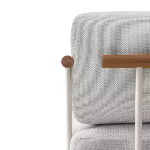 Een diepere en bredere zitting tilt de lounge-ervaring naar een hoger niveau, dankzij de sierlijke roestvrijstalen poten. De rugleuning en armleuningen van stalen buis zijn verrijkt met opvallende teakhouten details, wat warmte en karakter toevoegt. De uitneembare bekleding zorgt voor eenvoudige reiniging en een onberispelijk onderhoud in de loop der tijd.
