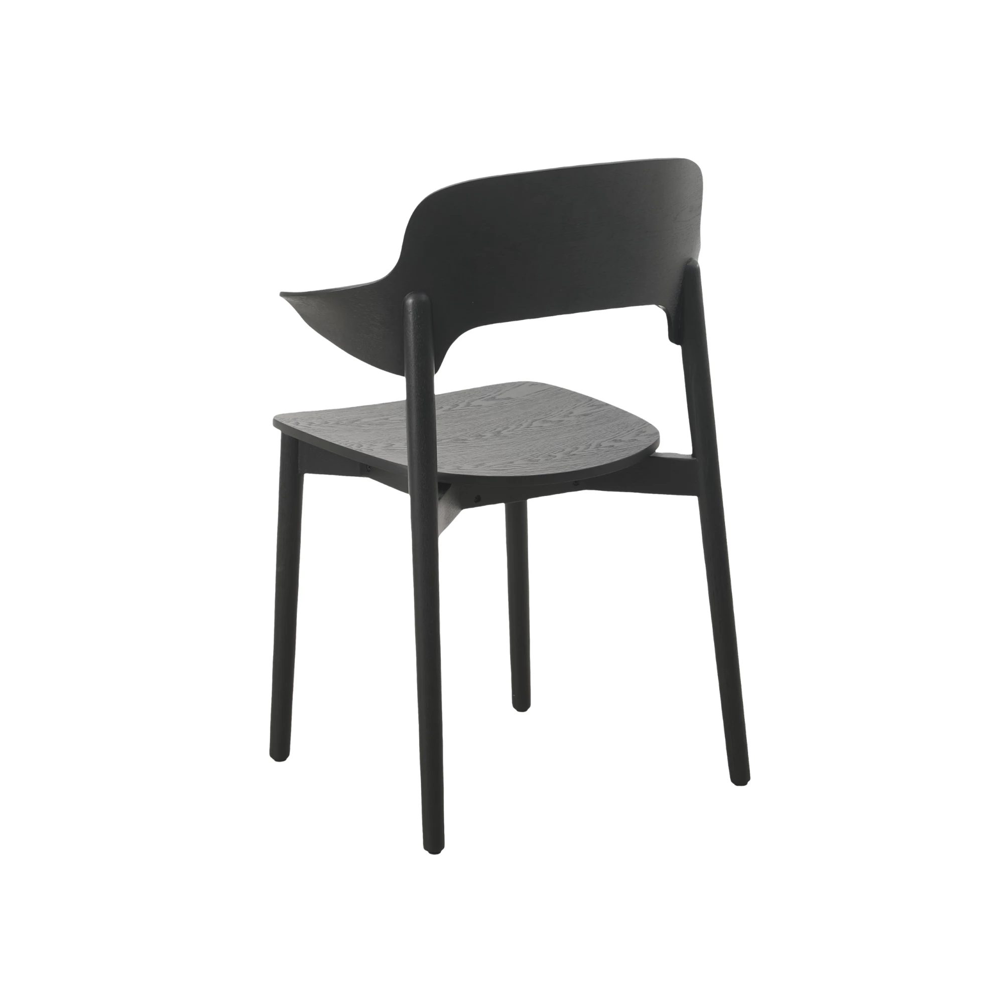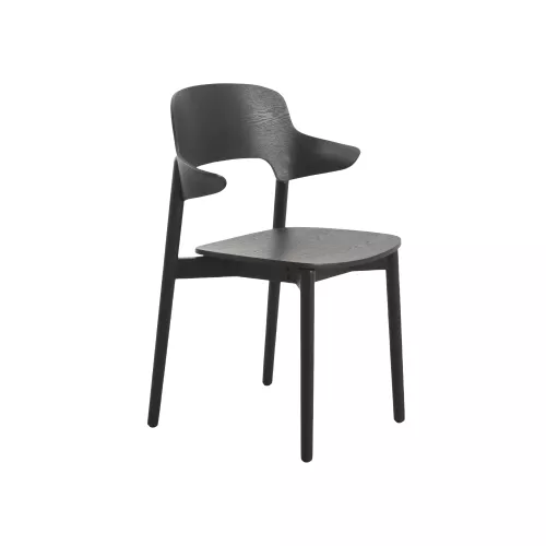 Moderne stoel van massief eikenhout met geïntegreerde armleuningen.
