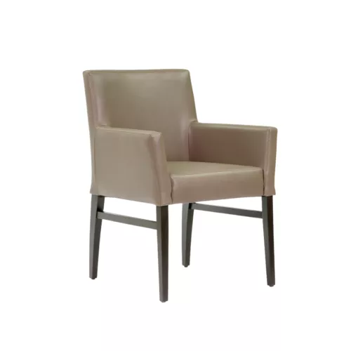 Bernard A is een comfortabele houten stoel met armleuningen, gemaakt met een stevig beukenhouten frame. De stoel is ideaal voor elke horecazaak en past bij uiteenlopende interieurstijlen. De bekleding is verkrijgbaar in duurzame stoffen of kunstleer.