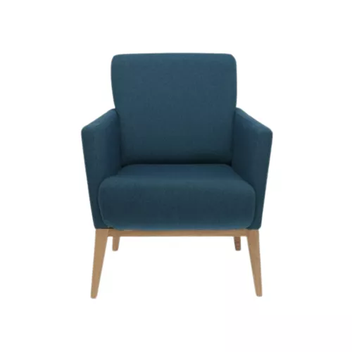 De Bowen fauteuil heeft stevige beukenhouten poten en is volledig gestoffeerd op zitting, rugleuning en armleuningen voor optimaal comfort. Verkrijgbaar in diverse professionele stoffen of kunstleer en verschillende houtkleuren. Perfect voor lounges, lobby’s en horecaruimtes, stijlvol en duurzaam.