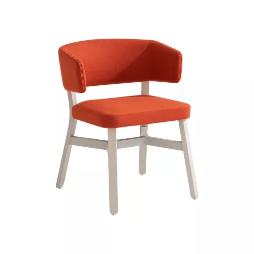 Croissant 571 is een elegante gestoffeerde stoel met een frame van massief beukenhout. De gebogen rugleuning biedt extra comfort en ondersteuning, terwijl de zitting zacht en aangenaam is. Verkrijgbaar in diverse houtafwerkingen en een breed scala aan professionele stoffen voor een persoonlijke touch.