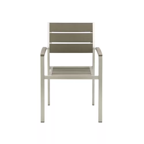 De Dave stoel is een moderne en duurzame keuze voor terrassen en buitenomgevingen. Het stevige frame van geborsteld aluminium is weerbestendig en corrosiebestendig, ideaal voor langdurig gebruik. De zitting en rugleuning zijn voorzien van grijze polywood latten, die de warme uitstraling van hout combineren met het gemak van kunststof. Licht van gewicht maar toch stabiel, is Dave perfect voor horecatoepassingen. Dankzij het moderne ontwerp, het comfort en het onderhoudsgemak is deze stoel een uitstekende toevoeging aan elke buitenruimte.