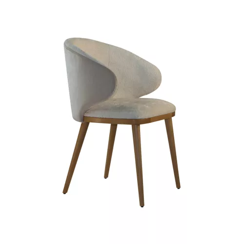 Emilia AW is een moderne, elegante houten stoel met een naadloze rugleuning die overgaat in verfijnde armleuningen. Het beukenhouten frame, verkrijgbaar in verschillende afwerkingen, benadrukt de zichtbare houten onderkant, terwijl de gestoffeerde zitting en rugleuning verkrijgbaar zijn in hoogwaardige stoffen of imitatieleer. Duurzaam en stijlvol, ideaal voor diverse horecagelegenheden.