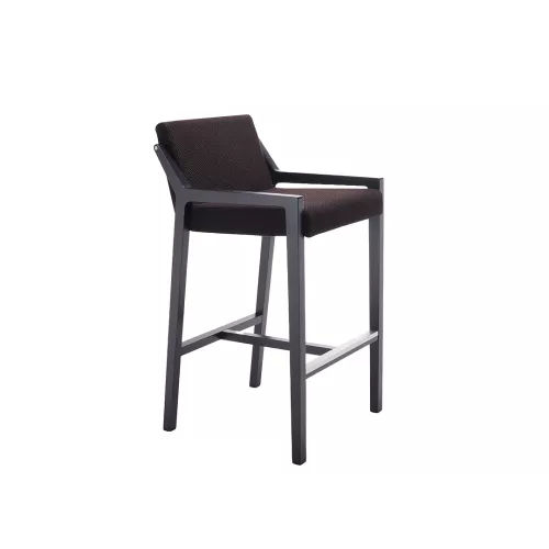 De houten barkruk Fred BK belichaamt de geest van gastvrijheid en combineert comfort met verfijnd design. De zacht gestoffeerde zitting en rugleuning, verkrijgbaar in diverse stoffen of kunstleer, rusten op een massief beukenhouten frame met een aluminium voetensteun. De zachte lijnen van de kuip contrasteren prachtig met de robuuste structuur en creëren een gastvrije, tijdloze esthetiek.