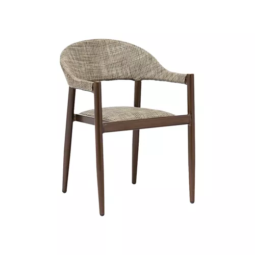 George is een stijlvolle buitenstoel uit de Garden Emotions-collectie, ideaal voor op het terras of in de tuin. Het aluminium frame is gepoedercoat met een houtlook en gecombineerd met een beige textielweving. Optioneel met bijpassend zitkussen.