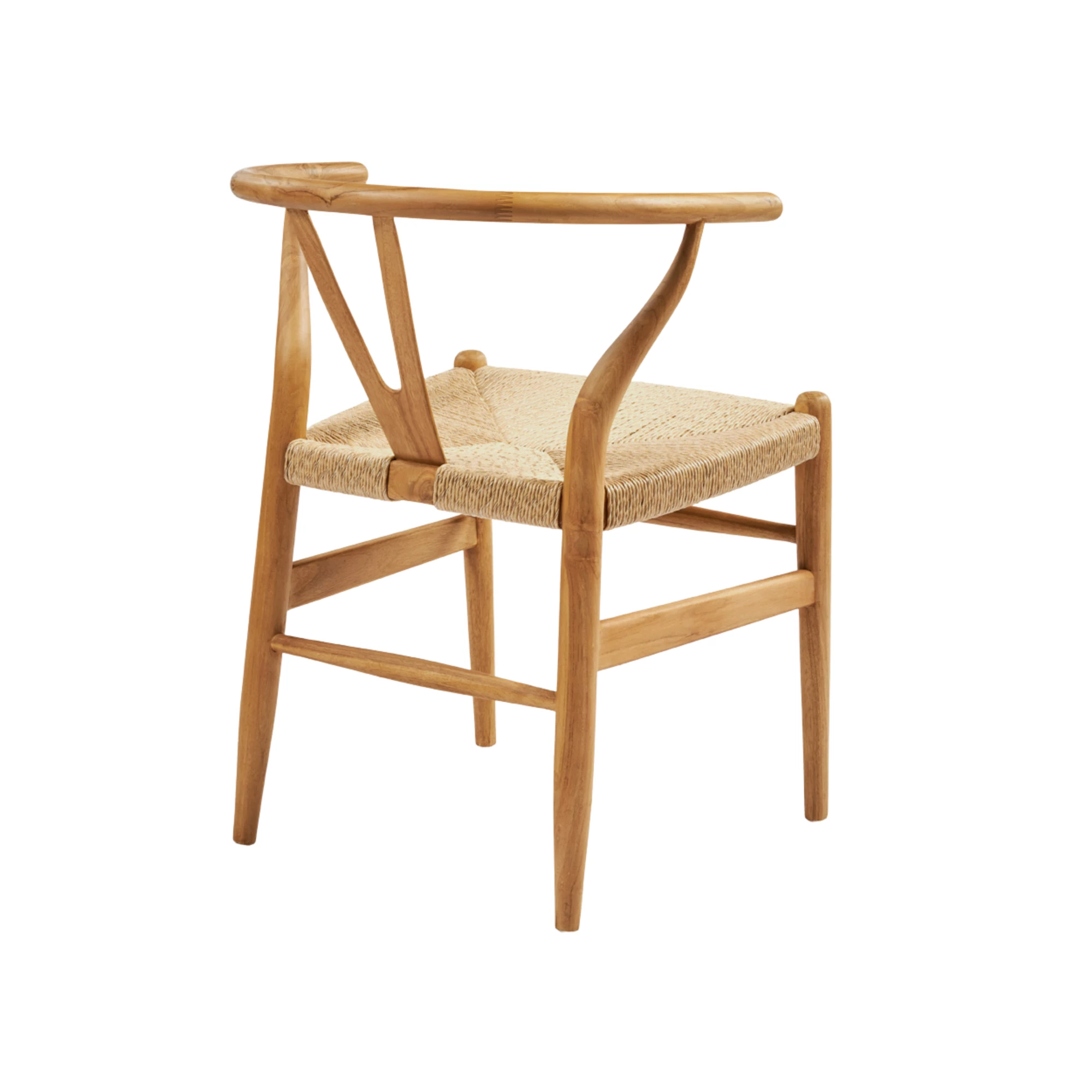 Buitenarmstoel van duurzaam teakhout met zitting en rugleuning van hoogwaardig synthetisch riet. Geschikt voor terrassen, tuinen en horecagelegenheden in de buitenlucht. Afmetingen: 58x57x73 cm.