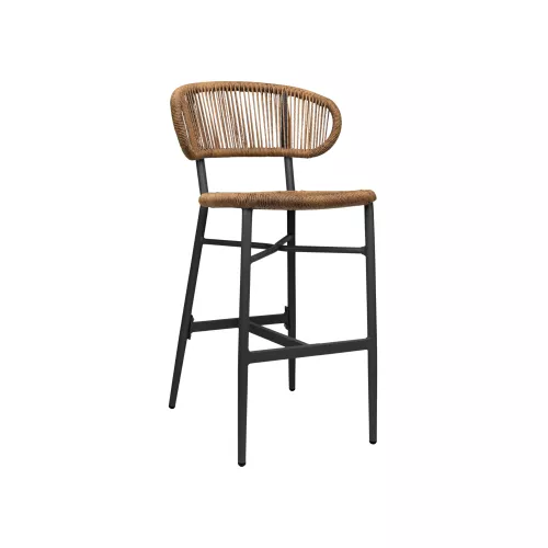 Comfort speelt een belangrijke rol op ieder horecaterras. Een goed ontworpen barkruk nodigt gasten uit om langer te blijven zitten en te genieten van hun tijd. Deze barkruk voor buiten combineert een licht aluminium frame met een duurzame poedercoating, waardoor hij geschikt is voor intensief gebruik op terrassen. De zitting en rugleuning zijn uitgevoerd in een rattan vlechtwerk dat zorgt voor een warme uitstraling en aangenaam zitcomfort. Dankzij de lichte constructie is de barkruk eenvoudig te verplaatsen en bovendien stapelbaar voor praktische opslag. Verkrijgbaar in de kleurencombinaties charcoal/groen, charcoal/naturel, oranje en groen.