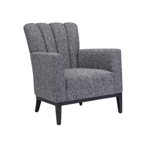 Madira is een verfijnde fauteuil met een stevig beukenhouten frame, verkrijgbaar in diverse beitskleuren. De verticale siernaad in de rugleuning zorgt voor een herkenbare, elegante uitstraling. De bekleding is beschikbaar in professionele stoffen of kunstleer. Perfect voor stijlvolle lounges, lobby’s en horecagelegenheden waar comfort en uitstraling samenkomen.