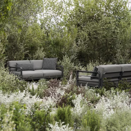 De Maximo Elemento Terminale Sofa is het eindstuk van een modulair loungezitsysteem, ontworpen voor buitengebruik. Het frame is gemaakt van UV-bestendig, geregenereerd glasvezel-polypropyleen met een matte afwerking. Dankzij het schroefloze systeem zijn rug- en armleuningen eenvoudig op elke zijde te bevestigen. De kussens zijn afritsbaar en afneembaar. Ideaal voor horecaterrassen.
