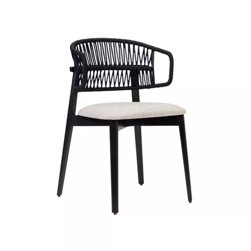Nebulas is een moderne stoel met armleuningen, gemaakt van duurzaam essenhout. De opvallende gevlochten koordrug combineert stijl en comfort. Ideaal voor horeca zoals restaurants en koffiezaken. Met diverse opties voor houtkleur en stoffering, en hoogwaardig schuim in de zitting voor langdurig gebruik.