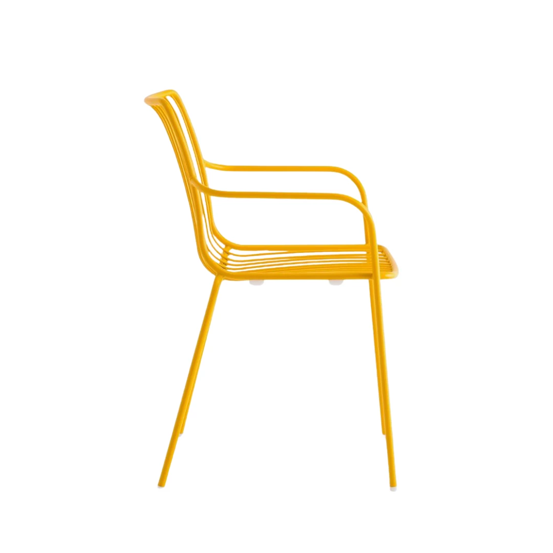Deze uitvoering heeft een hoge rugleuning en is volledig vervaardigd uit staal, ideaal voor gebruik in de buitenlucht.