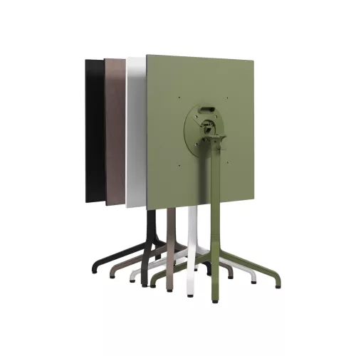 De Piani Laminated Top is gemaakt van hoogwaardig HPL (Hoge Druk Laminaat) met diktes van 1 cm en 1,2 cm, evenals Laminate HPL Solid Core (1 cm dik) en Fenix NTM®/Solid (1 cm dik). Geschikt voor zowel binnen als buiten, combineert het duurzaamheid met modern design. Verkrijgbaar in verschillende kleuren, waaronder grijs, wit, caffe*, antraciet*, cement, tortora, legno, corten*, agave en tabacco* (afmetingen 110x70 en 120x80 zijn alleen beschikbaar in grijs en wit).