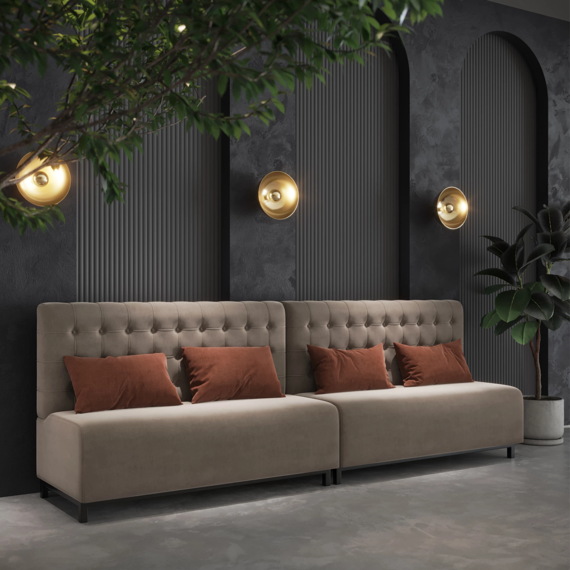 De Qvadro Bank biedt een combinatie van eigentijdse elegantie en praktisch gebruiksgemak voor restaurants, cafés en bistro’s. Met een zwarte of standaard melamine sokkel en stevige berkenhouten poten staat deze bank garant voor duurzaamheid en een moderne uitstraling. De achterzijde is bewust niet gestoffeerd voor eenvoudige plaatsing tegen wanden of scheidingspanelen, terwijl het zitvlak hoogwaardige stoffering biedt voor optimaal comfort. Het stofverbruik bedraagt 2,8 m per meter zonder beklede achterzijde, of 3,8 m per meter met gestoffeerde achterzijde. Qvadro is sterk, veelzijdig en ontworpen om elke horecaruimte stijlvol te versterken.