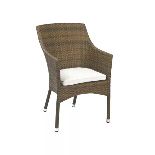 Sady is een horeca buitenstoel met armleuningen, gemaakt met een gepoedercoat aluminium frame en PE-Wicker zitvlak in roca look. UV- en weerbestendig, stapelbaar, en geschikt voor uiteenlopende interieurstijlen. Verkrijgbaar met waterafstotend, gestoffeerd zitkussen voor extra comfort.