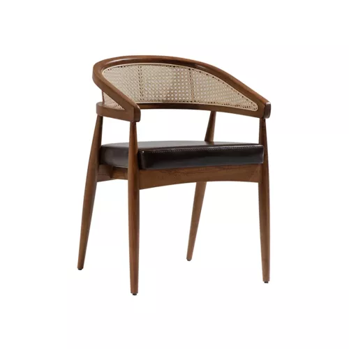 De Serona stoel biedt een verfijnde balans tussen natuurlijke schoonheid en comfort. Hij is gemaakt van duurzaam beukenhout en verkrijgbaar in diverse kleurvarianten. Hij heeft een gestoffeerde zitting en een elegante rieten rugleuning. Met een bekleding in professionele stoffen of imitatieleer past de Serona moeiteloos in restaurants, hotels en diverse horeca-interieurs, en voegt warmte en verfijning toe.