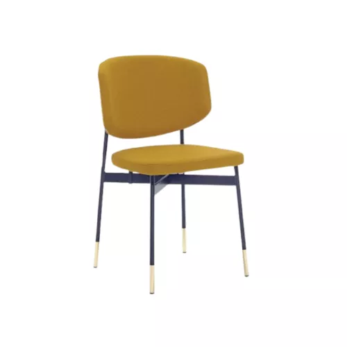 Maak kennis met de Silk S stoel – een naadloze mix van elegantie en comfort. Met een stevig metalen frame in GH grafiet mat of NE mat zwart, OT messing poten en een zacht gestoffeerde zitting, brengt deze stoel moderne verfijning en een uitnodigende stijl in elk restaurant, café of bistro.