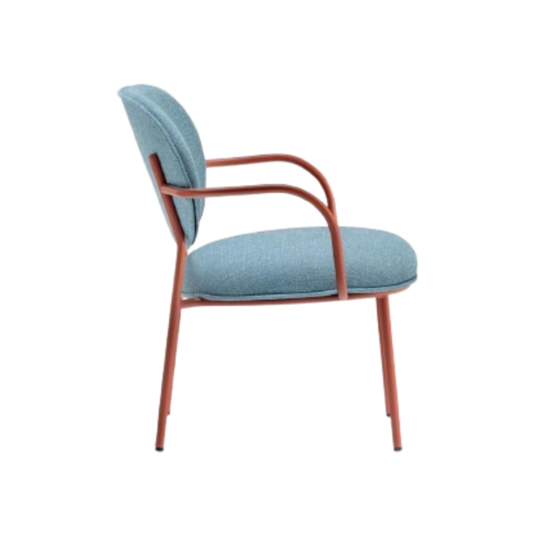 De Stiel 2969 is een stijlvolle fauteuil met een stalen buisframe van Ø20 mm en een zitting en rugleuning bekleed met flexibel polyurethaanschuim, wat comfort en duurzaamheid biedt. Het strakke design maakt hem ideaal voor binnenruimtes zoals restaurants, hotels en loungeruimtes, en combineert moderne esthetiek met praktische elegantie.