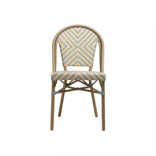 Discover the Tone terrace chair, an ideal seating solution for restaurants, cafés, and bistros. Crafted with a sturdy aluminum frame for lightweight durability, it features an attractive bamboo look that brings natural warmth and elegance to any outdoor or indoor space. Thanks to its UV-resistant construction and flat weaving, Tone is built to withstand sun and weather, ensuring long-lasting beauty. Its stackable design (up to 19 pieces) allows for efficient storage and easy handling, making it perfect for high-traffic hospitality settings. Available in a range of color combinations — Classic Bamboo/Black-White, Light Bamboo/Beige-Blue, Light Bamboo/Beige-Pink, and Light Bamboo/Black-White — Tone offers versatility and style to match any décor. Bring comfort, practicality, and a refined aesthetic to your terrace with Tone.