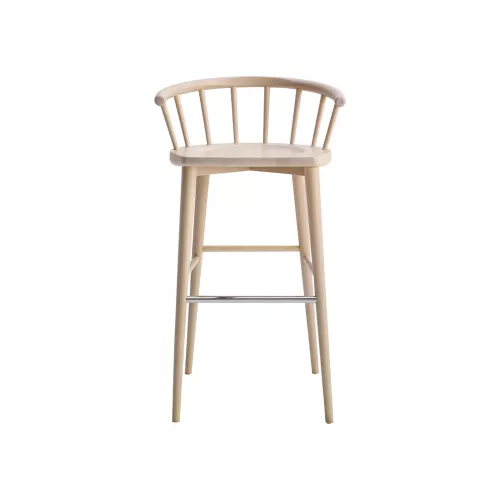 De W 607 is een verfijnde houten barkruk, ontworpen voor veeleisende horecagelegenheden. De zitting en rugleuning zijn vervaardigd uit beukenhout en zijn met precisie gevormd voor een visueel evenwichtig en ergonomisch profiel. De kruk heeft een stevige metalen voetensteun en is verkrijgbaar in diverse houtbeitsen of optionele RAL-kleuren. Perfect voor stijlvolle commerciële interieurs.